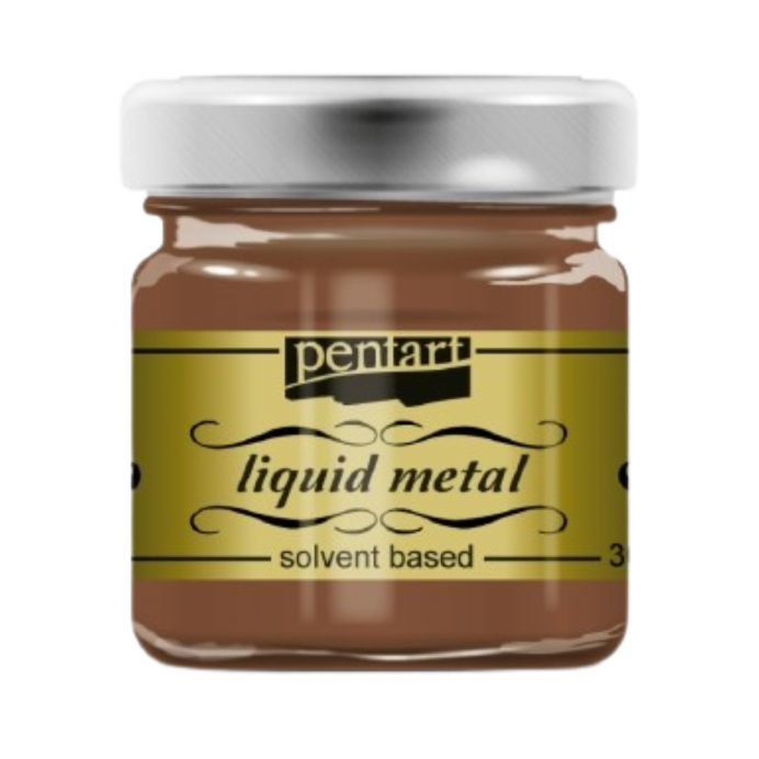 Breng warmte en elegantie in je creatieve projecten met Pentart Liquid Metal koper. Deze metallic verf op oplosmiddelbasis staat bekend om zijn intense glans en rijke pigmentatie, en is perfect voor decoratieve toepassingen waar een realistisch metaaleffect gewenst is. Of je nu werkt aan een miniatuur, mixed media kunstwerk of een uniek interieuritem, deze kopertint geeft direct een luxe uitstraling.