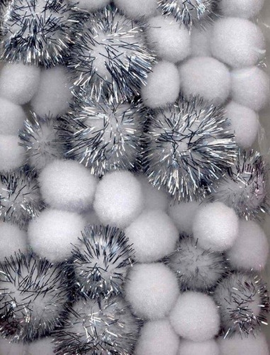 Pom Poms Set Wit incl glitter 50 ST 2 cm, 2.5 cm, 3.5 cm