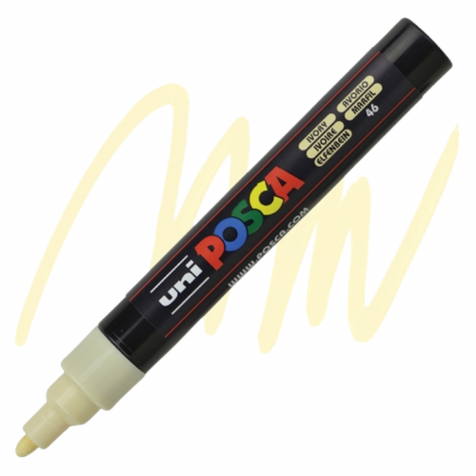De Posca 5M Ivory marker is zacht en veelzijdig. Met de medium bullet tip (1,8–2,5 mm) kun je zowel details uitwerken als vlakken egaal vullen. Het warm ivoorpigment geeft een subtiele en elegante afwerking die uitstekend combineert met andere kleuren.