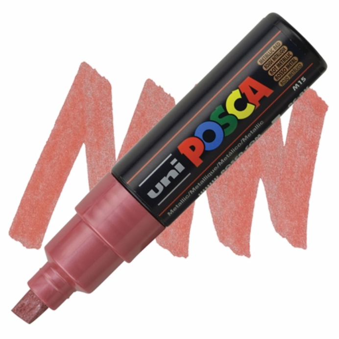 De Posca 8K Metallic rood is de dunste Posca-marker in het assortiment: ideaal voor precisiewerk, outlines en sierlijke handlettering. De verfachtige, dekkende inkt hecht op vrijwel alle ondergronden en is reukarm, wat hem favoriet maakt bij zowel gevorderde makers als starters.