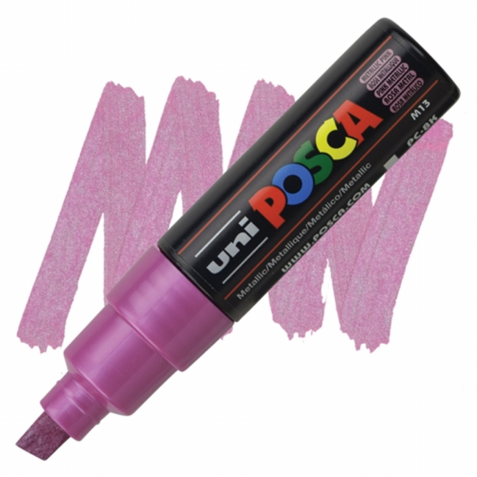 De Posca 8K Metallic roze is de dunste Posca-marker in het assortiment: ideaal voor precisiewerk, outlines en sierlijke handlettering. De verfachtige, dekkende inkt hecht op vrijwel alle ondergronden en is reukarm, wat hem favoriet maakt bij zowel gevorderde makers als starters.