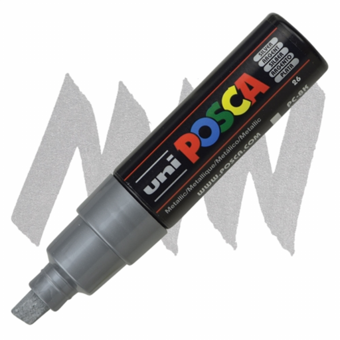 De Posca 8K Zilver is de dunste Posca-marker in het assortiment: ideaal voor precisiewerk, outlines en sierlijke handlettering. De verfachtige, dekkende inkt hecht op vrijwel alle ondergronden en is reukarm, wat hem favoriet maakt bij zowel gevorderde makers als starters.