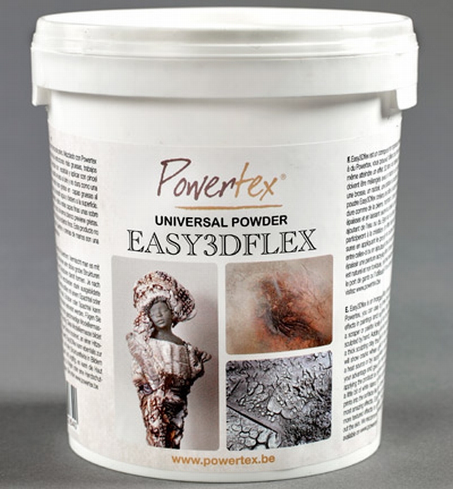 Powertex Easy 3D Flex 1000 gram is een mineraal poeder op basis van Carrara marmer dat je mengt met Powertex Universal Medium om een stevige, modelleerbare pasta te maken. Deze pasta droogt hard uit en geeft spectaculaire craquelé-effecten, ideaal voor mixed media, sculptuur, diorama’s en cosplay props.