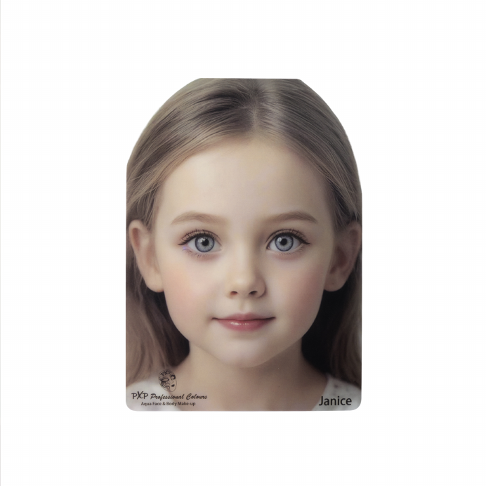 Het PXP Oefenbord Jenny is een praktisch hulpmiddel voor iedereen die schminktechnieken wil oefenen en verfijnen. Dit bord toont een realistisch meisjesgezicht en is gemaakt van glad, stevig kunststof. Schmink hecht goed op het oppervlak en kan eenvoudig weer verwijderd worden, zodat je eindeloos kunt experimenteren met kleuren, lijnen en effecten.