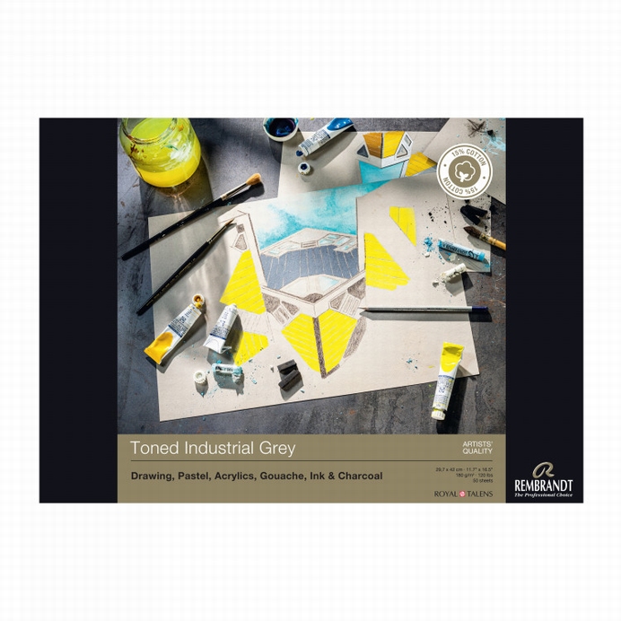 Rembrandt Toned Industrial Grey toned Papier A3 is ontworpen voor makers die consistente resultaten willen en probleemloos willen combineren met andere materialen uit het assortiment.