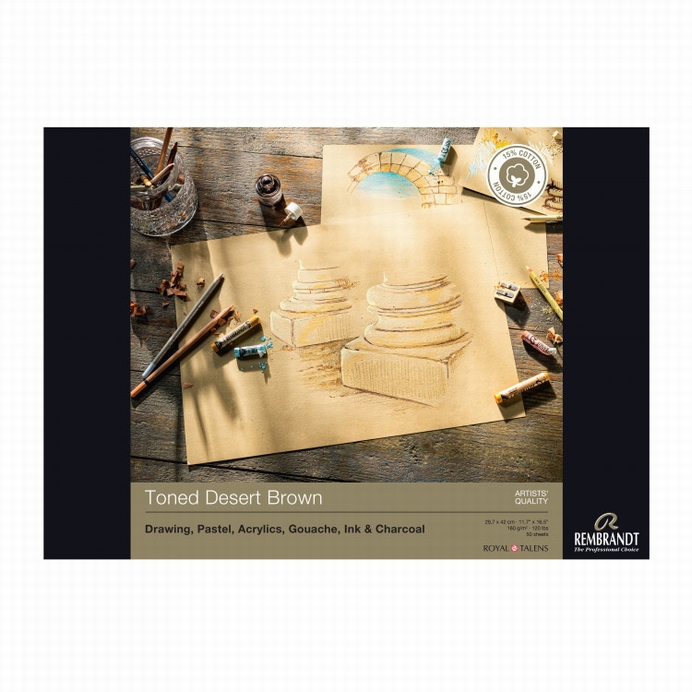 Rembrandt Toned Woestijn Bruin Papier A3 is ontworpen voor makers die consistente resultaten willen en probleemloos willen combineren met andere materialen uit het assortiment.