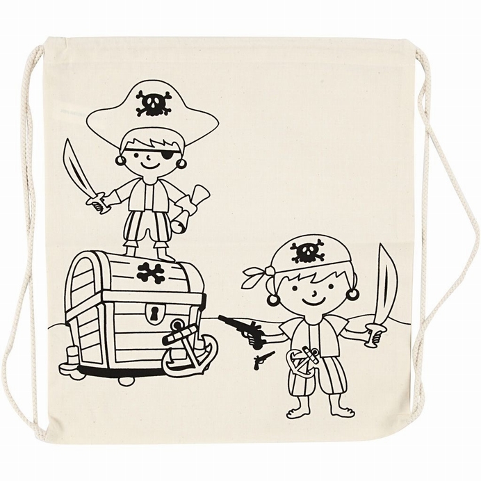 Gebruik Rugzak, afm 37×41 cm, 110 g/m2, licht naturel, Piraten voor schilderen, decoreren, knutselwerk en mixed media experimenten.