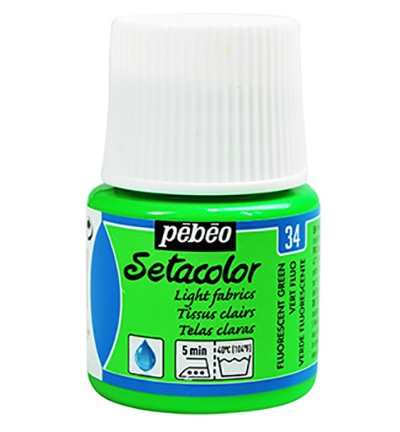 Bestel Pébéo Setacolor Light Fabric Fluorescent Green (artikelcode: 329-034, EAN: 3167863290348) eenvoudig bij Foamtastic Crafts. Wij bieden een breed assortiment Pébéo verf en creatieve materialen. Je kunt je bestelling laten verzenden of ophalen in ons atelier in Nederland of tijdens een creatieve conventie.