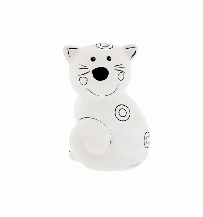 Keramieken ondergrond die op verschillende manieren gedecoreerd kan worden zoals schilderen of met Foam Clay bijvoorbeeld en daarna als spaarpot te gebruiken.