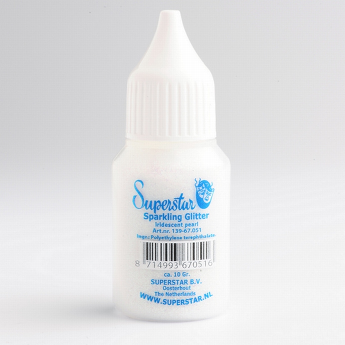 Om een glitter aan te brengen op uw gezicht of in uw haar zonder schmink kun je gebruik maken van de glittergel die wij hebben van Superstar. Deze gel houd de cosmetische glitter goed vast en geeft zelf ook een leuke glanzende basis.