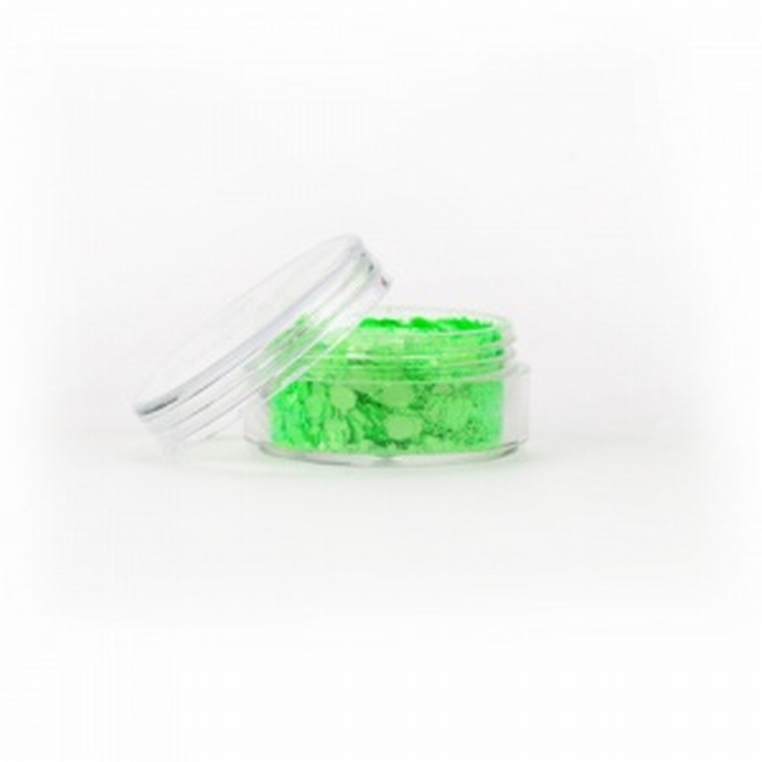 De Chunky mix wordt ook wel festivalglitter genoemd. De Fluerescent Green Chunky mix ziet er spectaculair uit. Maar het is ook prima te verwerken in je haar. In de mix van glitter zitten verschillende glitters in verschillende mate (en soms ook kleuren). Het geeft makkelijk en snel een feestelijke resultaat. Alleen al dit gave glittertje en je hebt een partylook In het potje zit 8ml aan chunky glitter.