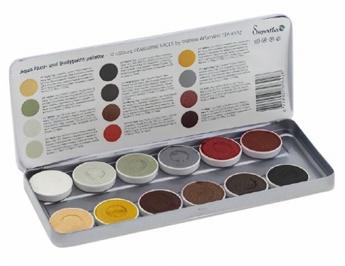Het complete assortiment bevat meer dan 100 prachtige heldere matte, metallic, metallic met glitters kleuren. Deze waterschmink is makkelijk afwasbaar met water en zeep.
