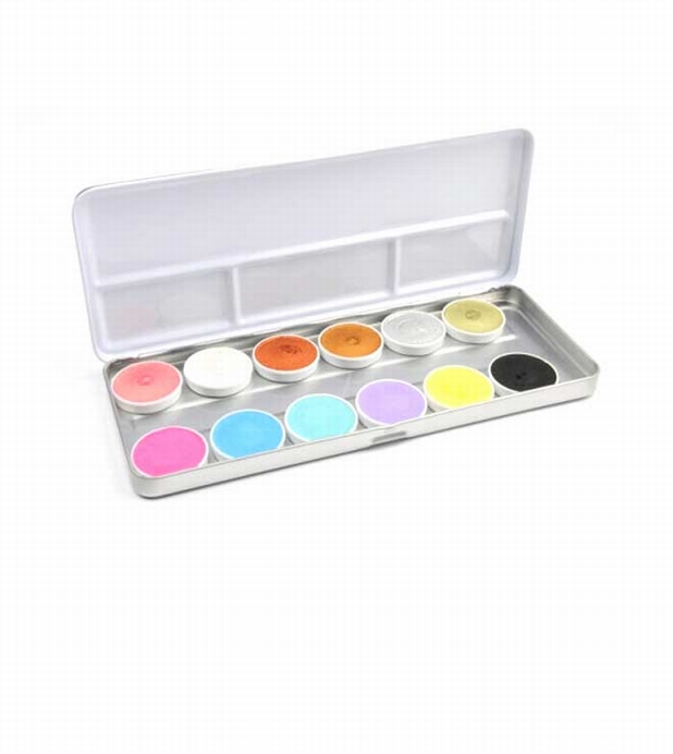 Aqua Face- and Bodypaint palette 12 colours DUO SHIMMER- AND PASTEL COLOURS