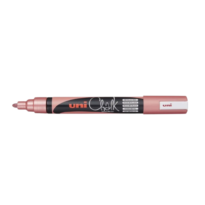 Uni Chalk Marker 5M, Metallic Rood is een betrouwbaar creatief hulpmiddel voor schrijven, tekenen en decoreren. Het past naadloos in projecten voor hobby, school, studio en cosplay/fantasy en combineert prettige handling met een mooi resultaat op papier en karton.
