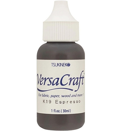 De VersaCraft Inker | Espresso is een inker (navulfles/re-inker) met watergedragen pigmentinkt, speciaal ontwikkeld voor gebruik op poreuze ondergronden zoals textiel en leer. Deze kleur is donker espressobruin en geeft stempelafdrukken een rijke, gelijkmatige dekking. Door de langzaam drogende formule is deze inkt ook zeer geschikt voor heat embossen, zelfs op gladde papiersoorten.