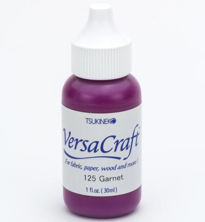 De VersaCraft Inker | Garnet is een inker (navulfles/re-inker) met watergedragen pigmentinkt, speciaal ontwikkeld voor gebruik op poreuze ondergronden zoals textiel en leer. Deze kleur is diep robijnrood en geeft stempelafdrukken een rijke, gelijkmatige dekking. Door de langzaam drogende formule is deze inkt ook zeer geschikt voor heat embossen, zelfs op gladde papiersoorten.