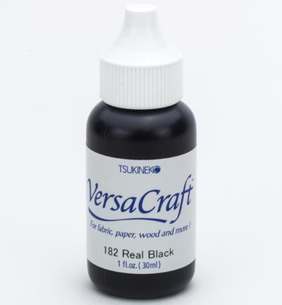 De VersaCraft Inker | Real Black is een inker (navulfles/re-inker) met watergedragen pigmentinkt, speciaal ontwikkeld voor gebruik op poreuze ondergronden zoals textiel en leer. Deze kleur is intens diepzwart en geeft stempelafdrukken een rijke, gelijkmatige dekking. Door de langzaam drogende formule is deze inkt ook zeer geschikt voor heat embossen, zelfs op gladde papiersoorten.
